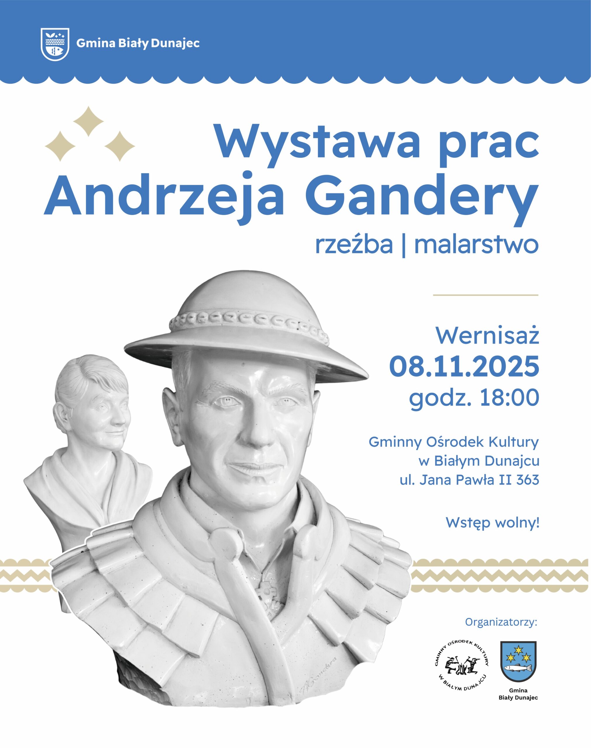 Gminny Ośrodek Kultury im. gen. bryg. Andrzeja Galicy w Białym Dunajcu serdecznie zaprasza na otwarcie wystawy prac Andrzeja Gandery, które odbędzie się w sobotę, 8 listopada 2025 roku, o godz. 18:00 w sali wystawowej GOK, ul. Jana Pawła II 363.