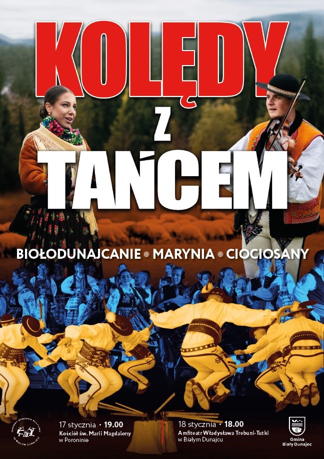 W niedzielę, 18 stycznia 2026 roku, gorąco zapraszamy do Białego Dunajca na wyjątkowy koncert plenerowy pt. „Kolędy na Ludowo z Tańcem”. Na scenie Amfiteatru im. Władysława Trebuni-Tutki przy ul. Kościuszki wspólnie kolędować będą: Biołodunajcanie, ZPiT „Marynia” i Kapela Ciociosany.